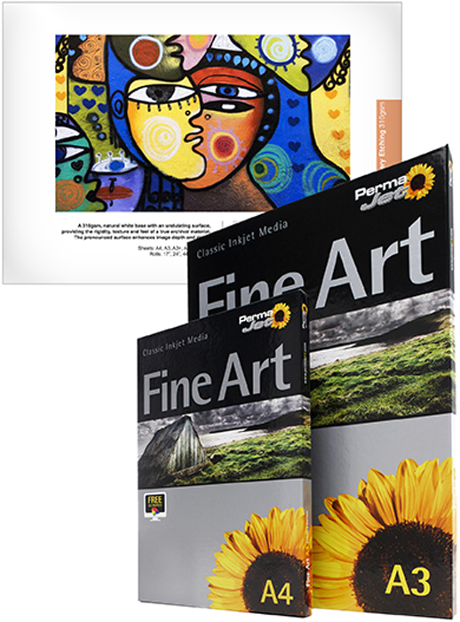 This particular paper consists of a alpha cellulose base and which has a 310 paper weighting. This new surface revitalizes the textured range. It's surface is suitable for fine art photography and takes PermaJet into the popular art etchings business sector.