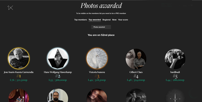 The top lists are now ordered according to the new points system on 1x.com/members