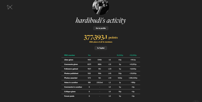 We have greatly redesigned the top lists and created a whole new activity feature where you can see detailed statistics of all your activities on 1x, including levels (0-100) for each category.