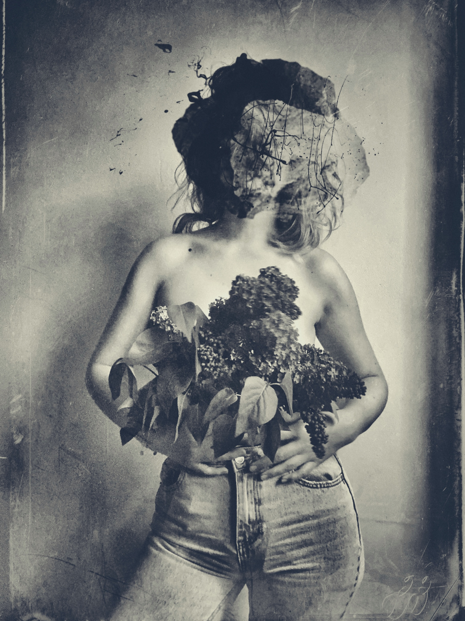 I definitely don’t have an old time favourite because I connect to my previously created images differently in accordance to the memory I have towards them. I will pick up this one (Lilac Scented Emotion) I shot back in 2021 being influenced by a bouquet of lilac flowers I came across while having a common stroll that spring. The image is to be linked to a particular ‘missing someone feel’ I was experiencing at the time. I love it cause it came up as a truly 90’s dark visual because of the sepia tones I chose to play with inside. It could go as the darkened version of selling CK jeans, if you ask me. I played with covering the face with the piece of stone element I layered in iColorama , which stands for the true identity of the feeling I was having at that time. I love it cause is funky, dark, abstract and compelling to the viewer’s eye that could try to investigate the true meaning behind the shot.