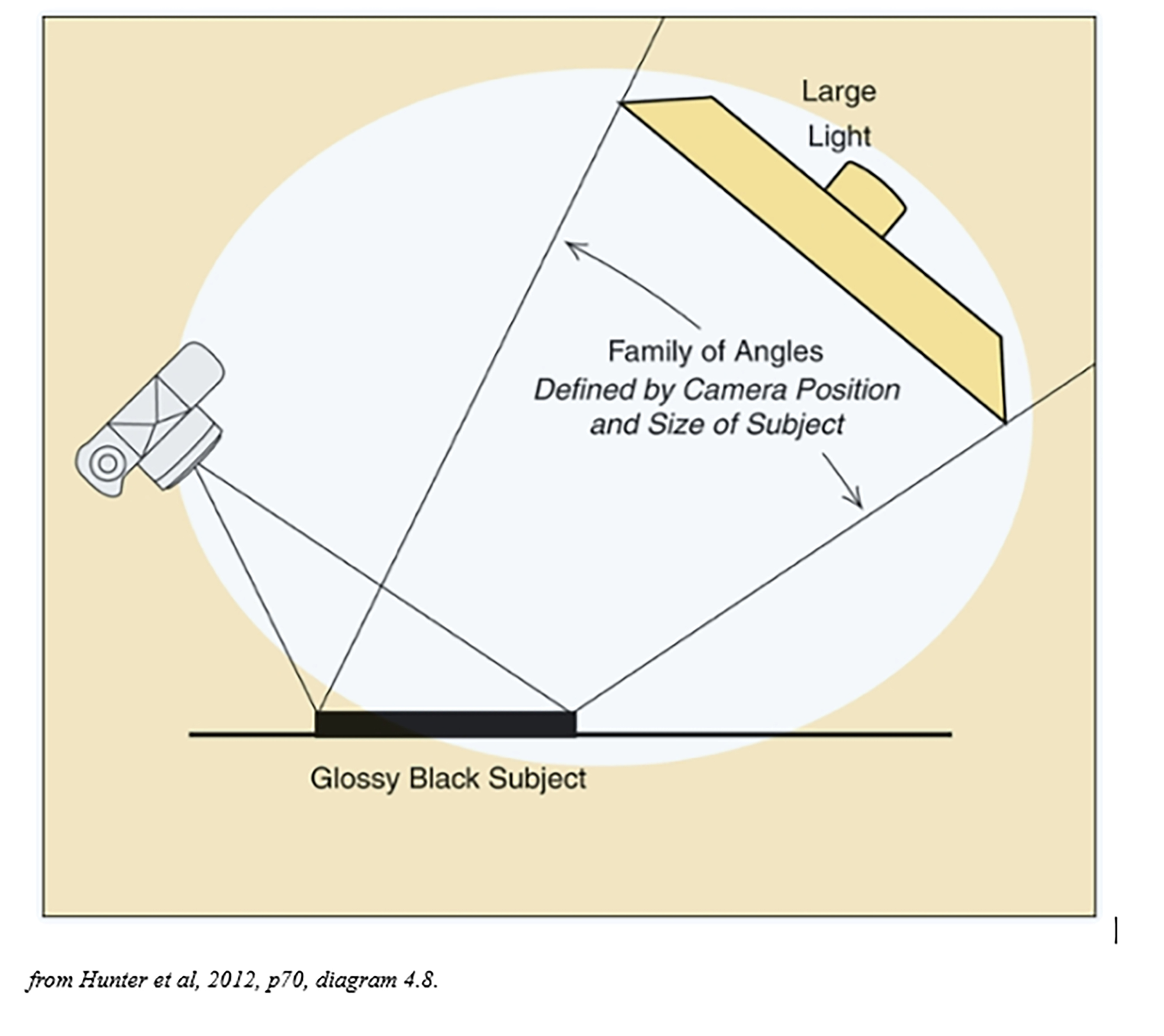 But first, a bit of theory. In physics they teach you that the angle of incidence of light equals the angle of reflection. This is particularly important in the types of photography discussed here, and is sometimes called the Family of Angles (Light: Science and Magic: An Introduction to Photographic Lighting, Fil Hunter, Biver and Fuqua, First published 1997)
