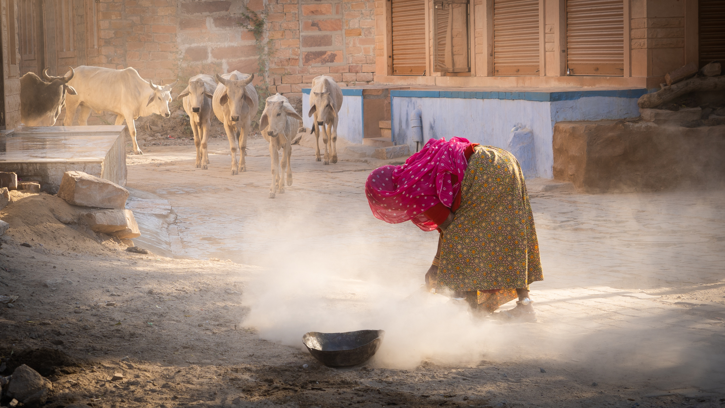 The smell was unbearable and you couldn't see your hand in front of your face because of the dust. So after half a minute I wanted to walk out until I suddenly noticed a man in a corner at the back of the shed, beautifully lit by a hole in the roof. The wall behind him was in such beautiful harmony that I immediately knew this was going to be a good photo, and so it was.